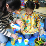また、いろいろな年齢の子がいっしょに制作しております。大きな子からすると、時には小さな子がうるさかったり、小さな子からすると、大きな子が厳しかったり、デメリットもありますが、いろいろな年齢の子がいっしょの時間を過ごすことも大切だと思いますし、大きな子が小さな子の面倒を見てくれたり、小さな子が大きな子の作品を見て憧れたり、素敵なこともあります。