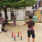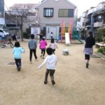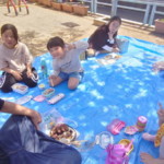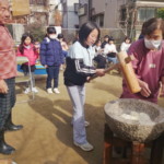 日曜日はお昼休み時間がありまして、お弁当を持ってきた子がいた時は公園で食べたり、鬼ごっこをしたり、夏は水遊びをしたり、地域の餅つきに参加させていただいたりしております。