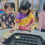 クリスマス会で、この日はたこ焼きホットケーキ作りやプレゼント交換などを行っています。