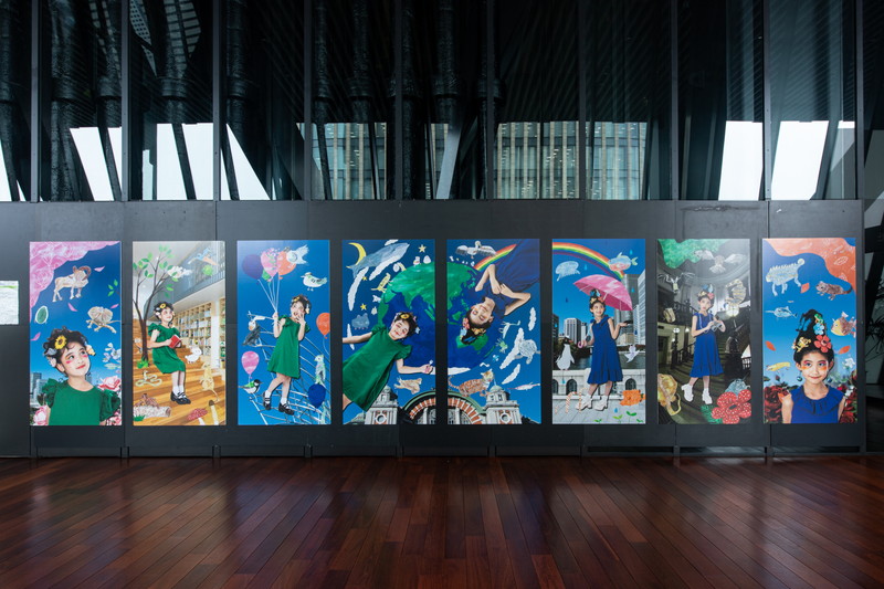 アートイベント「キテミテ中ノ島」の一部として、朝日新聞大阪本社前にて写真展「ちきゅうのこのゆめ」を実施。中ノ島を背景に子どもたちに描いてもらった地球の生き物たちを配し、モデルには私が作った動物の髪飾りと地球のイヤリングを身に着けてもらい、地球で生き物たちに囲まれて暮らす子どもたちが見る夢をテーマにして、高さ180cm×横90cmの写真8枚を展示させていただきました。