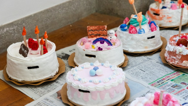 ケーキ貯金箱は一例ですが、学童や子供会、地域の集まりなどで夏休みに貯金箱づくりのワークショップや、お絵かきのワークショップを行ったりしています。