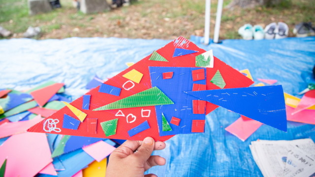 大阪府立青少年海洋センターにて。ヨットのセールに子どもたちと絵を描き実際に海の上をはしるという夢のような楽しいワークショップをさせていただきました。