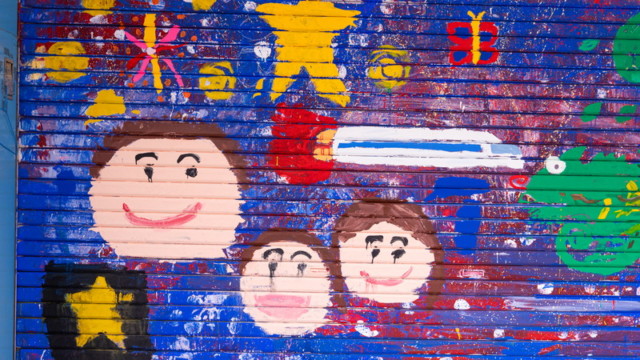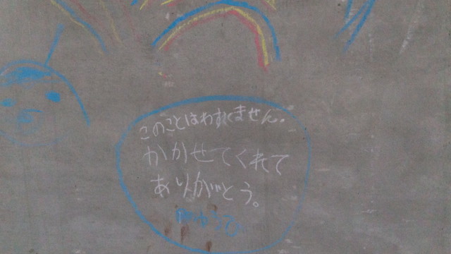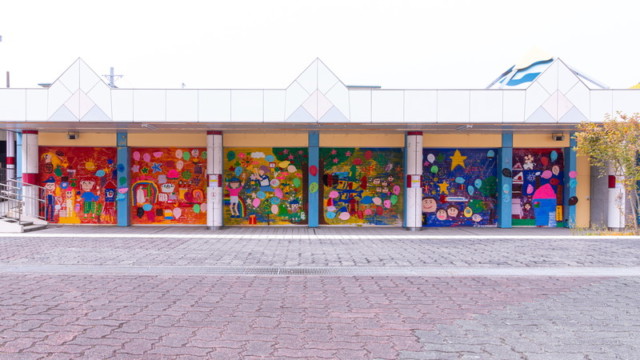 富田林市金剛銀座商店街で取り壊しになるピュア金剛のシャッターに子どもたちと自由に絵を描きました。イベントでも観る人を楽しませてくれて、子どものアートが町を行く人たちをしばらくの間元気にしてくれました。