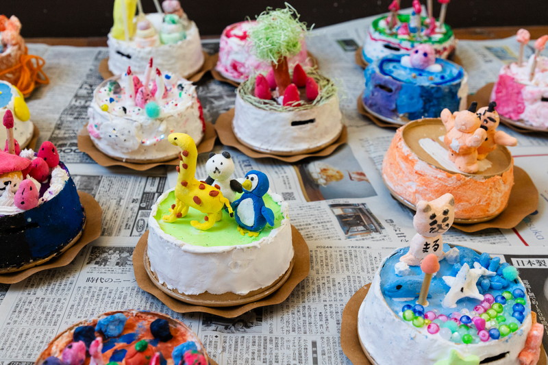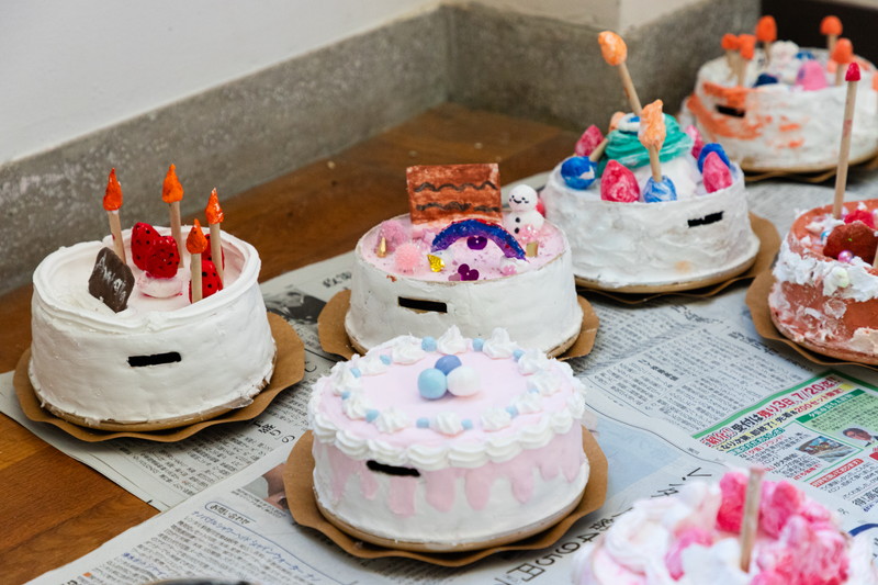 ケーキ貯金箱は一例ですが、学童や子供会、地域の集まりなどで夏休みに貯金箱づくりのワークショップや、お絵かきのワークショップを行ったりしています。